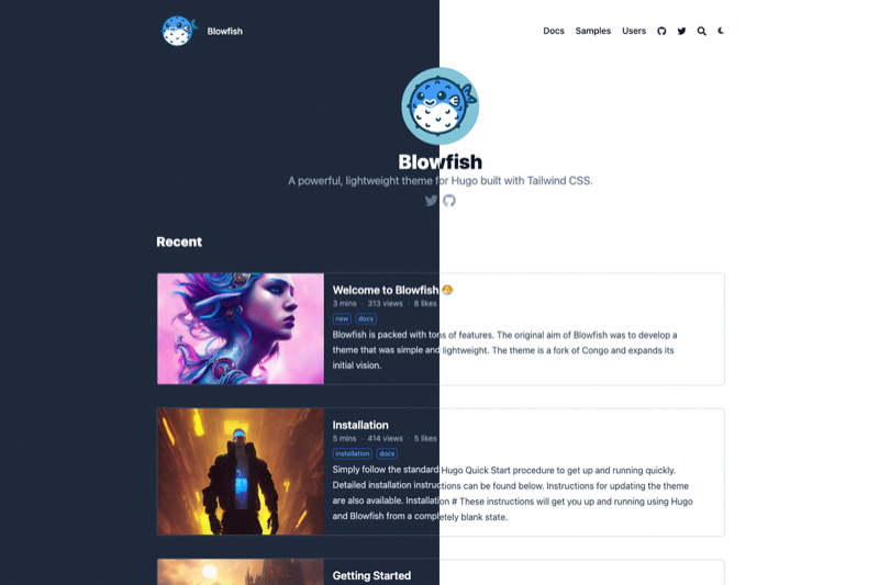Blowfish was built so it would be easy to add visual support to your articles. If your familiar with Hugo article structure, you just need to place an image file (almost all formats are supported bue we recommend .png or .jpg) that starts with feature* inside your article folder. And that’s it, Blowfish will then able to both use the image as a thumbnail within your website as well as for oEmbed cards across social platforms.